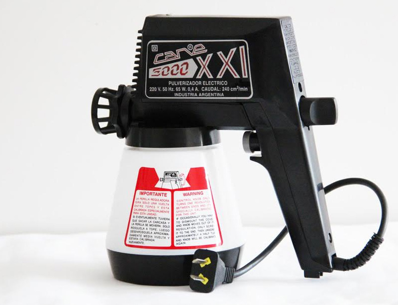 El pulverizador eléctrico “CANE”, es una herramienta manual que se adapta tanto a la exigencia de los profesionales como a las sencillas necesidades del aficionado, ya que con el mismo se obtienen óptimos resultados por poseer este un sistema que le permite aspirar -exento de aire- todos los líquidos que puedan ser pulverizados y los proyecta por medio de su bomba inyectora, sobre las superficies.