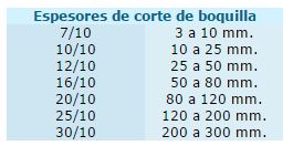 Para cortes superiores a 120mm. y hasta 300mm deben agregarse: para Oxígeno y Acetileno 3 inyectores y una segunda boquilla; para Oxígeno y Propano/Butano solamente 3 inyectores.